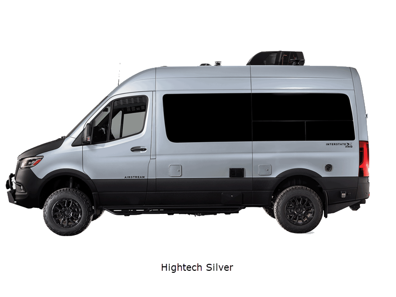 Sleeps 2 Length 19 ft 5 in Ext Width 6 ft 7 in Ext Height 9 ft 9 in Int Height 6 ft 2 in Exterior Color Hightech Silver, Tenorite Grey Metallic Hitch Weight 5000 lbs GVWR 9050 lbs Dry Weight 7595 lbs Cargo Capacity 1455 lbs Fresh Water Capacity 20 gals Grey Water Capacity 16 gals Black Water Capacity 9 gals Fuel Type Diesel Engine 2.0L 4-Cylinder High Output Chassis Mercedes-Benz Sprinter 2500 AWD Horsepower 208 hp Fuel Capacity 24.5 gals Wheelbase 144 in Torque 332 ft-lb Refrigerator Type 12 volt Refrigerator Size 3.1 cu ft Cooktop Burners 1 Number of Awnings 1 LP Tank Capacity 7.8 gals Water Heater Type Truma Combi Eco Plus AC BTU 13500 btu Awning Info Power Armless with Auto Retract Gross Combined Weight 13930 lbs Shower Type Wet/Bath Shower Electrical Service 30 amp