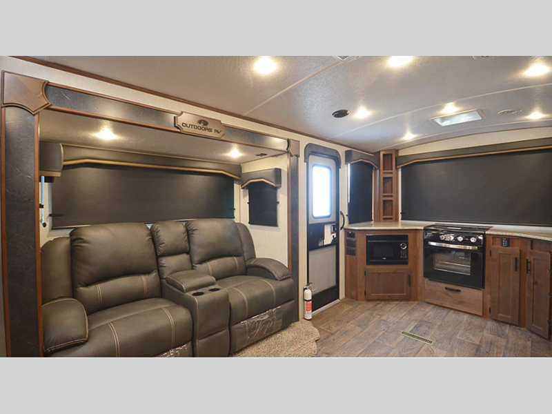 Enjoy added space and comfort in a Black Stone Mountain Series travel trailer by Outdoors RV!