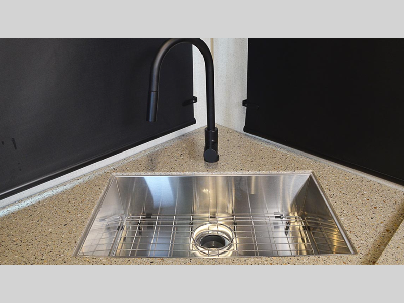 - Bottom Mount Metal Sink w/ High Rise Pull Out Faucet