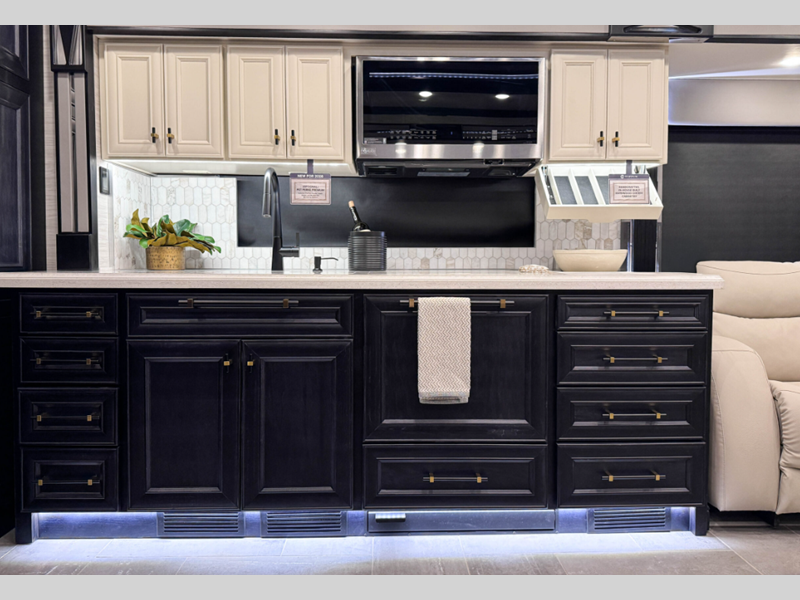 Each model features high-end appliances in the kitchen, along with ample cabinet and counter space. You will be blown away by the TVs, the energy management system, and the Spyder multiplex system to put you in control of your coach's function. You will love the new interior decor packages and new dash design, along with a new galley faucet and many more comforts.