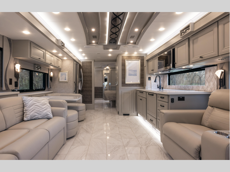 Adaptive cruise control, collision mitigation, and a tire pressure monitoring system helps you to safely arrive at each destination. The 10.0 kw Onan quiet diesel generator powers these units and Spyder multiplex system lets you control things at the touch of a finger. You'll love the new interior decor options, and the optional Pet Perks Package can be added if you're traveling with your furry friends!