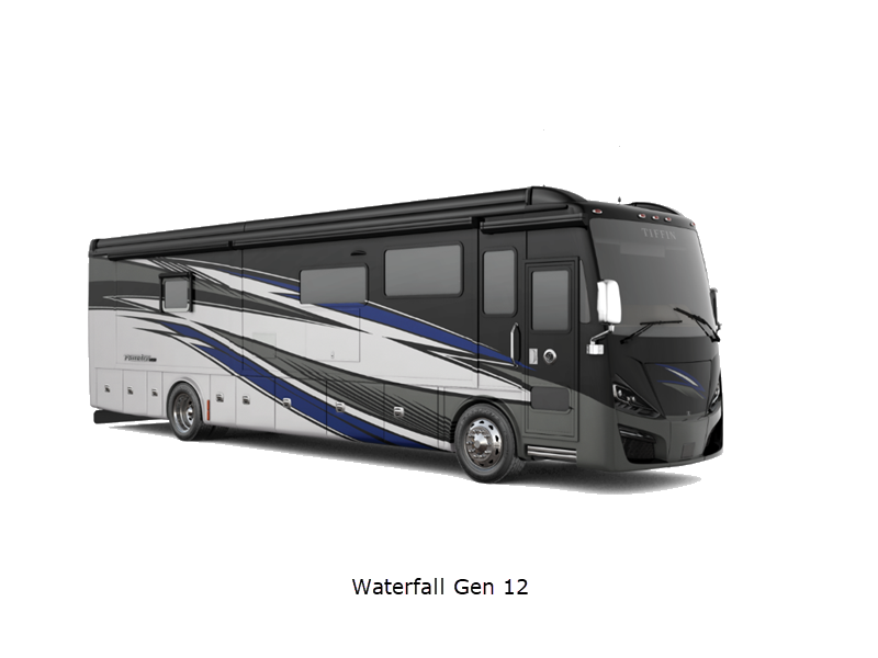 Sleeps 4 Slides 3 Length 37 ft 9 in Ext Width 8 ft 5 in Ext Height 13 ft 3 in Int Height 6 ft 11 in Interior Color Gelato, Mesa, Titanium Exterior Color Gen 10, Gen 11; Bordeaux, Waterfall, Frosted Granite, Nasa, White Mahogany. Midnight Blue Edition Hitch Weight 10000 lbs GVWR 40000 lbs Fresh Water Capacity 100 gals Grey Water Capacity 100 gals Black Water Capacity 55 gals Tire Size 295/80R 22.5 Furnace BTU 50000 btu Generator 10.0kW Onan Quiet Diesel Fuel Type Diesel Engine Cummins L9 Chassis Freightliner PowerGlide XC Raised Rail Rear Horsepower 450 hp Fuel Capacity 100 gals Wheelbase 222 in Available Beds King Torque 1250 ft-lb Refrigerator Type Stainless Steel Residential with French Doors and Bottom Freezer Refrigerator Size 22 cu ft Convection Cooking Yes Shower Size 31.75" x 40" Number of Awnings 2 Axle Weight Front 16000 lbs Axle Weight Rear 24000 lbs LP Tank Capacity 35.7 gals AC BTU 45000 btu Basement Storage 131 cu. ft. TV Info LR TV, BR Mounted TV, Ext. TV Awning Info Girard Power Patio and Window Washer/Dryer Available Yes Gross Combined Weight 50000 lbs Shower Type Shower w/Seat Electrical Service 50 amp Similar Floorplans